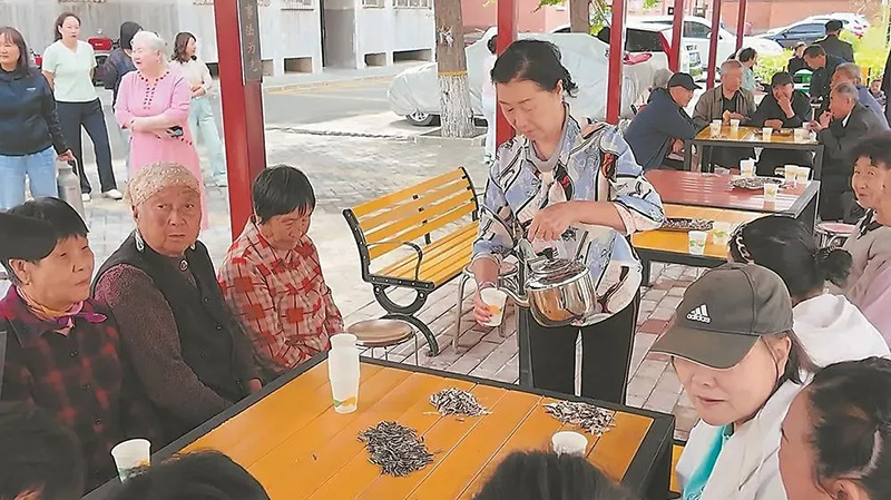 文明花园小区举行“近邻奶茶会”现场。