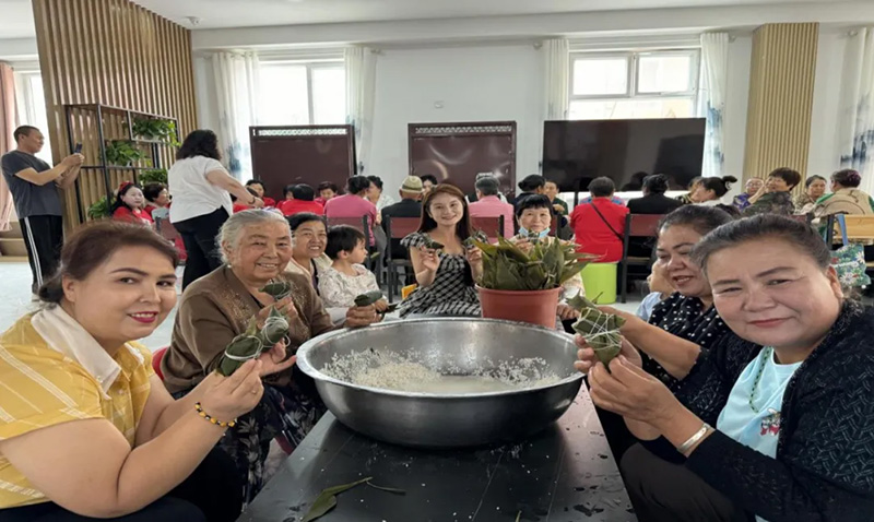 图为阿瓦提镇花园社区新时代文明实践站开展端午节文艺汇演暨包粽子活动。