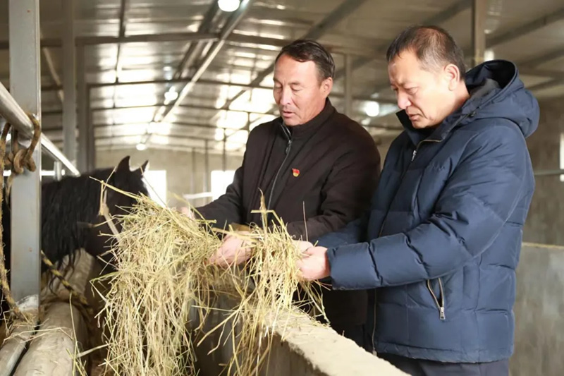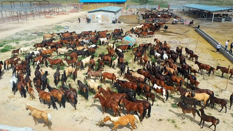 走进拜城县老虎台乡托普鲁克村骏腾养马专业合作社,一座座现代化高标准的养殖棚圈坐落于百亩优质草场之上,村民正忙着给马添加饲草料、打扫棚圈。