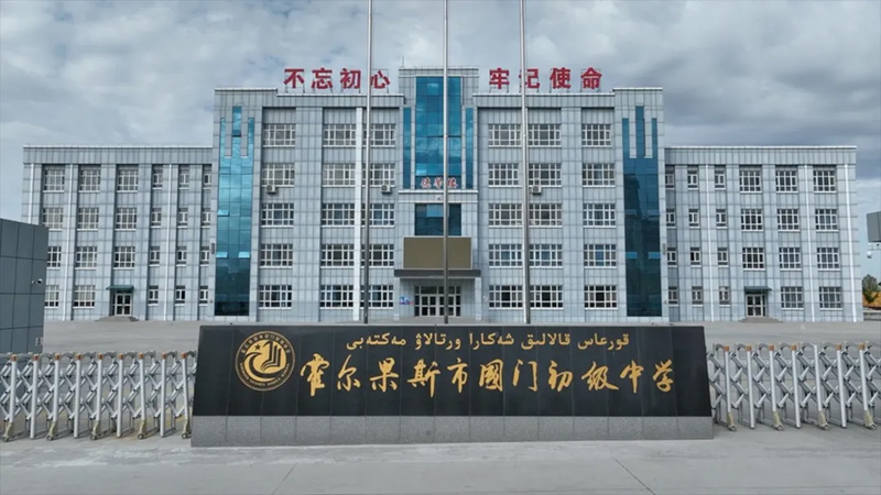 “学校距离边境线仅9米。”霍尔果斯市国门初级中学副校长周晓婉说,对面就是哈萨克斯坦。