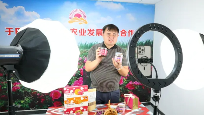 图为合作社直播间正在“云端”销售玫瑰花产品。帕日哈 摄