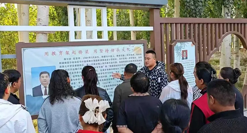 近期,阿克苏地区乌什县英阿瓦提乡以“铸牢共同体共圆强国梦”为主题,组织各族干部群众走进特日木村中华文化长廊。来自特日木村的党员毛拉艾麦提表示:“文化长廊上展示了许多名人的故事,我看到他们用实际行动诠释了对家乡的热爱。我也要以他们为榜样,从自身做起,积极参与家乡建设,为打造美丽乌什出一份力。"