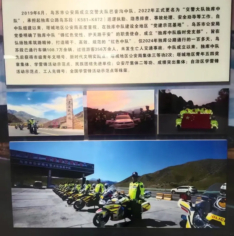 乌苏市以此为契机,将独库中队打造为“铸牢中华民族共同体意识示范点”,设置“筑路精神”“警队风采”“民族团结故事墙”等展陈板块,组织游客参观学习,让每一名经过这里的人都能感受到:这条路上,不仅有壮美风光,更有各族人民手足相亲、守望相助的深情厚谊。2024年,独库中队被中宣部授予“第九批全国学雷锋活动示范点”,成为全国民族团结进步创建的标杆单位。