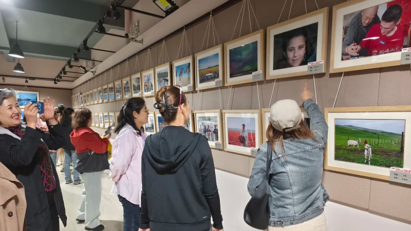 侨眷参观“侨心向党·克拉玛依市华侨华人摄影展”。