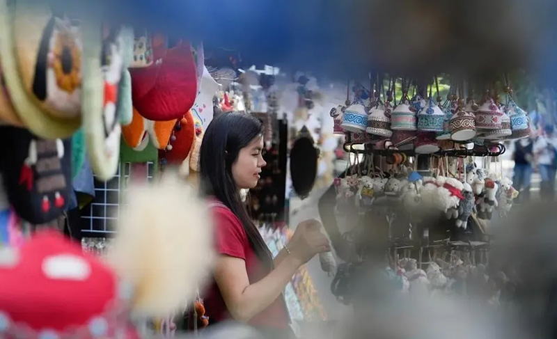 从居住的融合到文化的共鸣,旅游则为民族团结注入新活力。坐落着喀赞其景区的托特科瑞克社区蓝墙映花窗,蓝门守庭院,街头巷尾的手工艺品都染着天蓝色。其便以这抹“蓝”为起点,把文旅产业变成推动各民族交往交流交融的“引擎”。