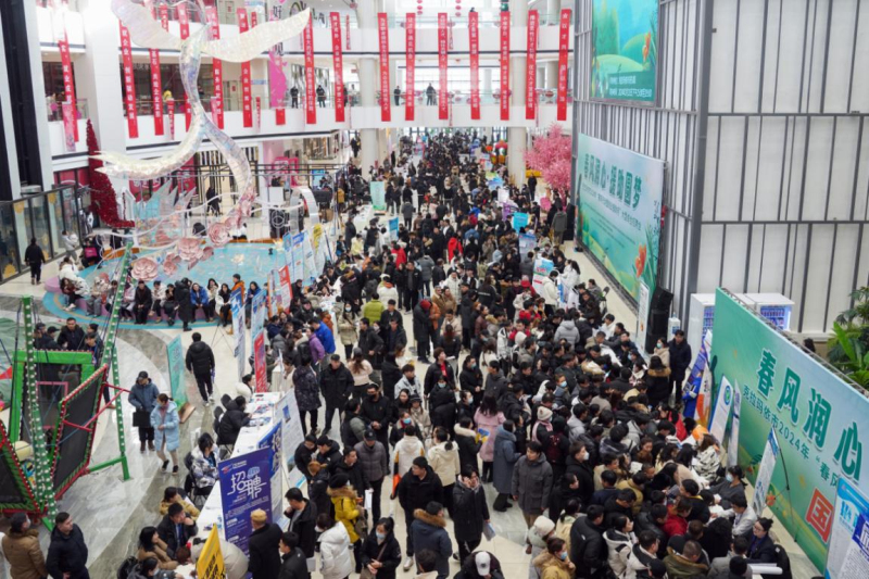 克拉玛依市举办2024年“春风行动暨就业援助月”大型综合招聘会。非尔代维斯・热夏提摄