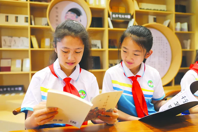 ▲学子在新疆木垒县新户镇中心学校养心书苑朱子阅览室内阅读。来源:福建南平援疆